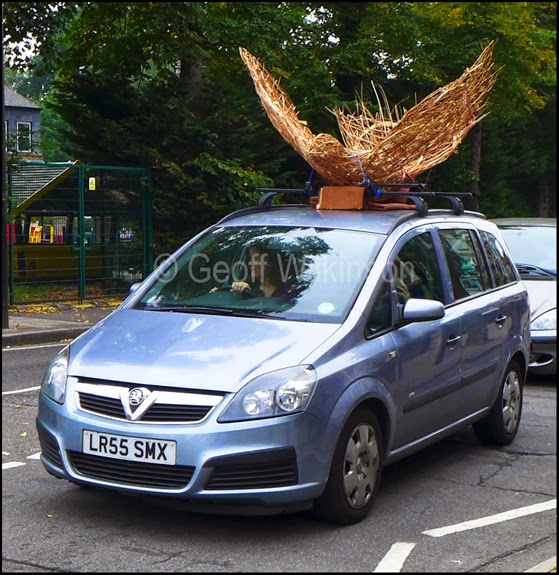 Geoff Wilkinson writes on Wanstead Daily Photo: “I have to admit to doing a double take at the weekend. It’s not every day you see a giant dove travelling along the High Street, I did wonder if I have had to many espressos before lunch. It was of course artist Anna Bisset delivering her willow ‘Peace Dove’ to the art installation at Wanstead Station, part of The Wanstead Art Trail.”